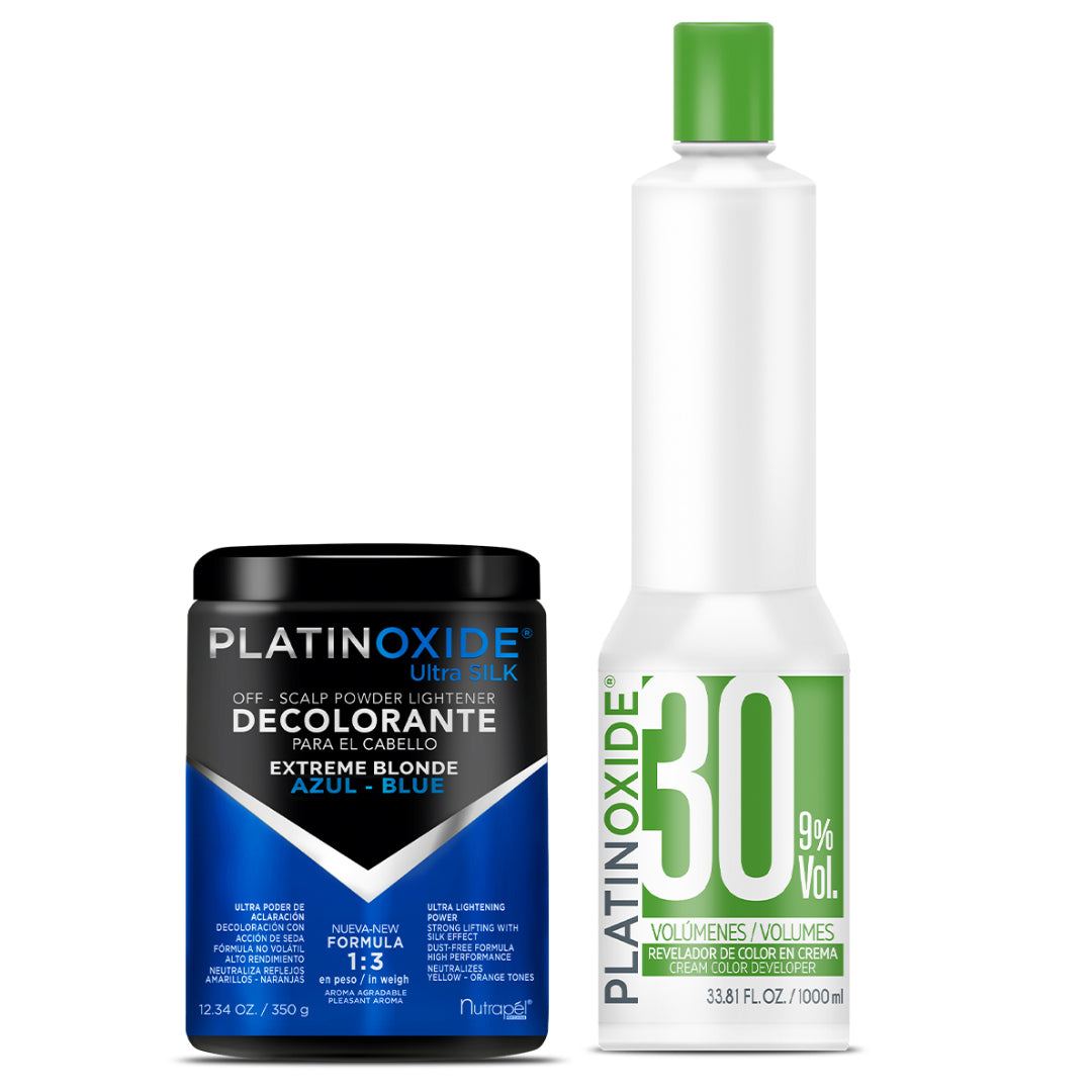 Nutrapel Decolorante Azul Platinoxide Ultra Silk 350 g + Revelador Platinoxide 30 Vol.